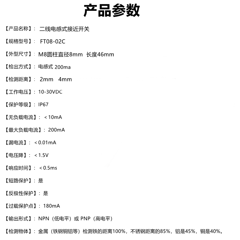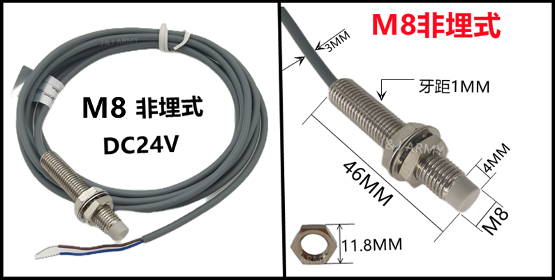 M8二线接近开关24VDC 非埋式FT08-02C 10-3V