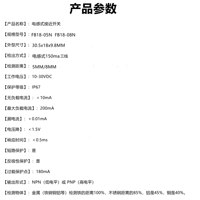 方形电感式接近开关FP18-05N传感器三线08N常开DC24V金属感应防水