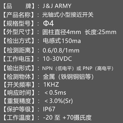 光轴式接近开关FH04-0.8N直径64MM无牙光杆传感器三线常开DC24V