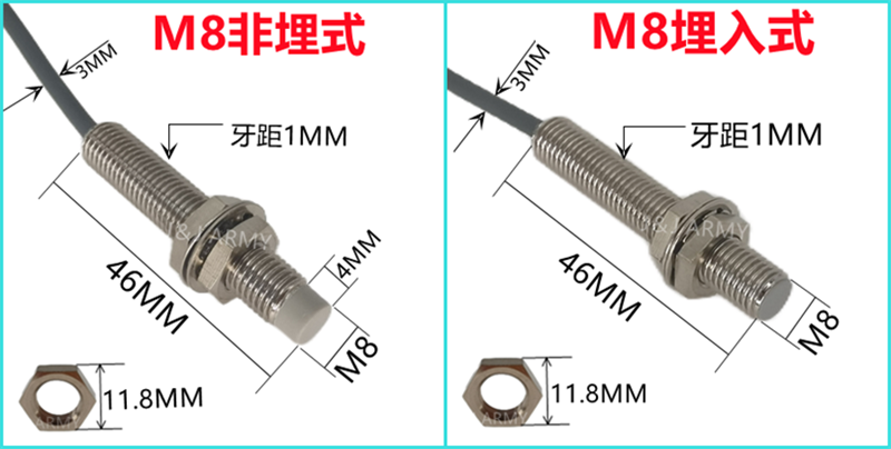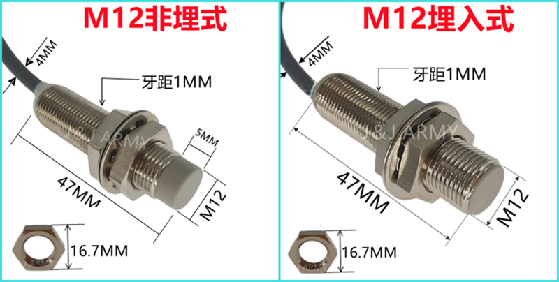 短型接近开关M8M12M18长度35长FM12-04NS非埋式常开三线DC24V感应