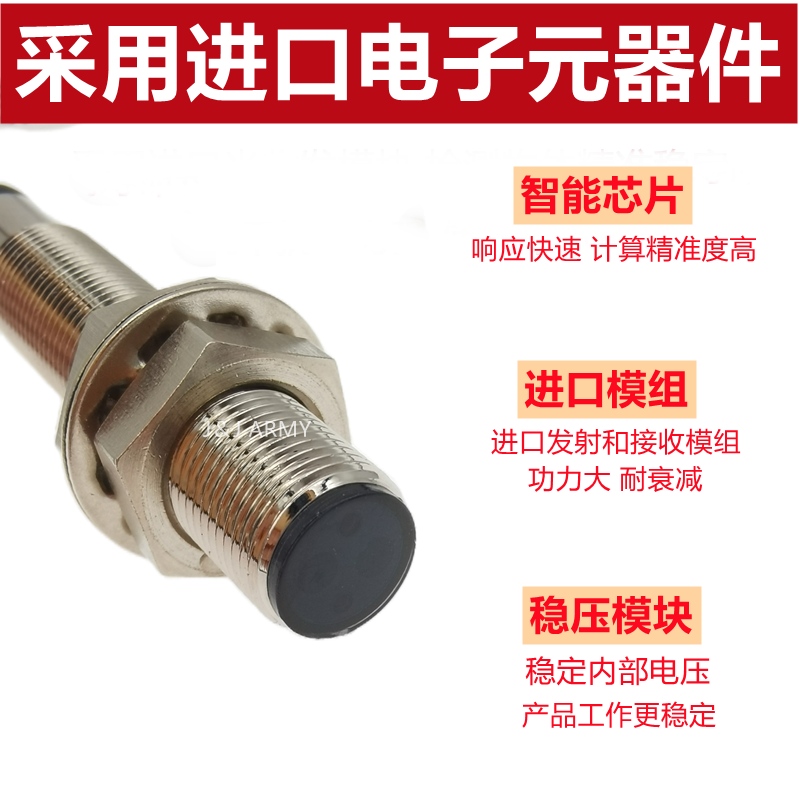 M12光电开关传感器检测距离可调,有100MM,200MM,300MM.