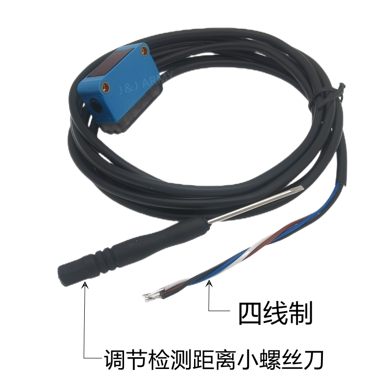 这款产品可以检测黑色物体和透明物体,检测距离可以调,最远30CM.